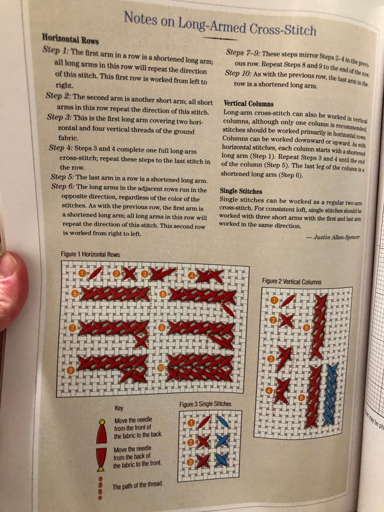 I used the long arm cross stitch or gamli krosssaumurinn. I followed the tutorial in the Piecework Magazine article by Justin Allan-Spencer (February 2020.)