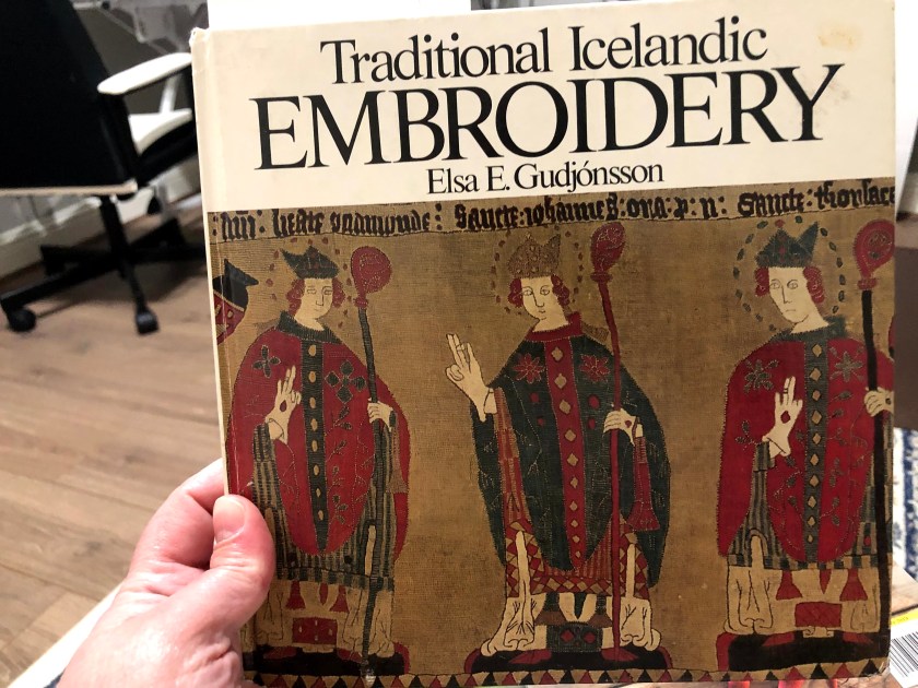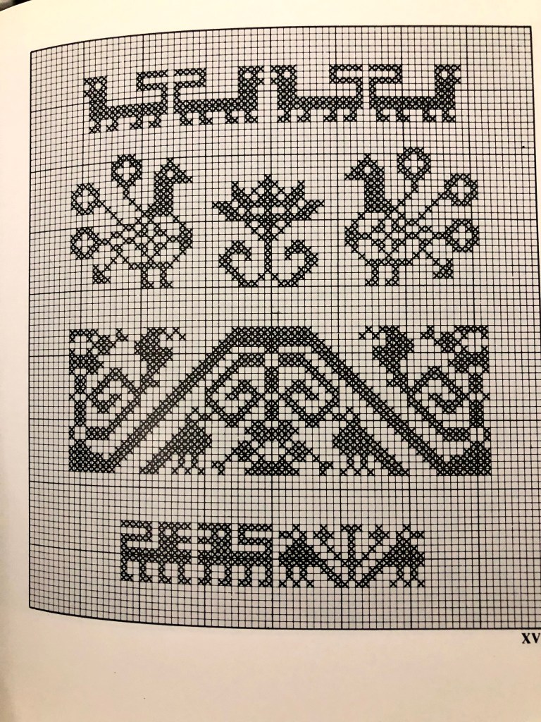 The pattern comes from the book Traditional Icelandic Embroidery by Elsa E. Gudjónsson. However, I did not use wool, rather, I shopped my stash and used 25-count linen and stranded cotton thread.