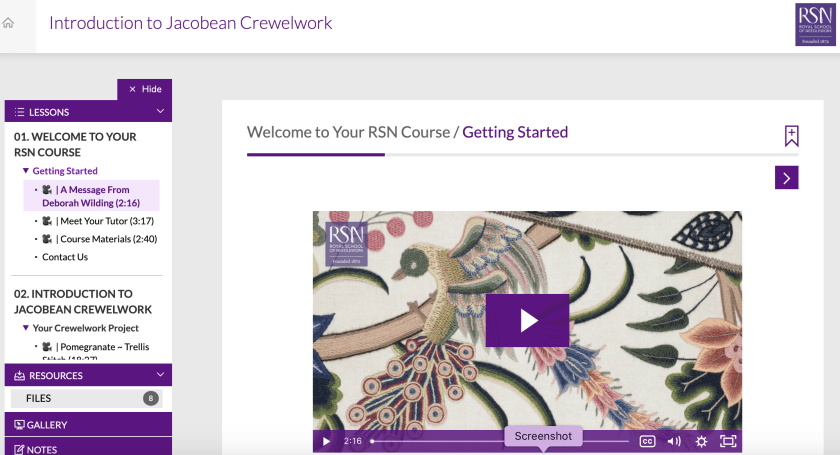 So I decided to take one of their online self-paced classes this summer. I signed up for the Introduction to Jacobean Crewelwork class.